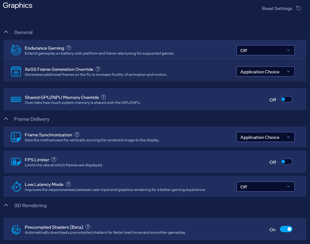 Intel Precompiled Shaders is disabled by default on supported systems, giving you full control over the feature.